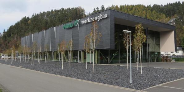 Der Neubau im thüringische Probstzella beherbergt den Werkzeugbau für die Spritzgussformen und wurde als Plus-Energie-Gebäude konzipiert.